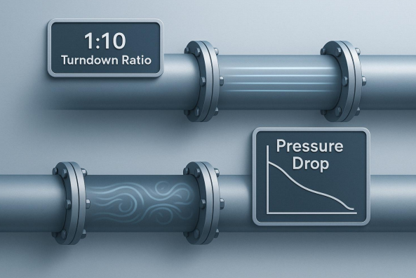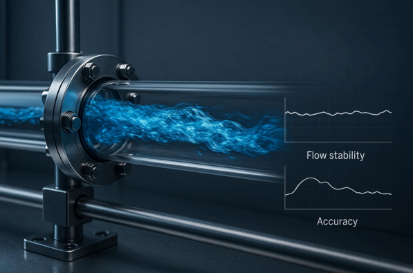 Правильный размер расходомера гарантирует, что расход останется в пределах оптимального значения. диапазон измерения (зона стабильности числа Рейнольдса) , избегая неточностей при низком расходе или превышении диапазона насыщения.